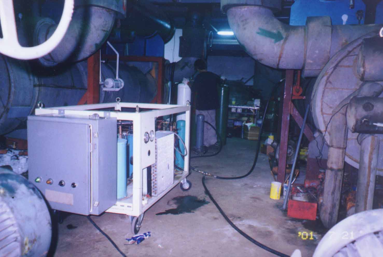 實績經驗 20000HP 高壓馬達檢修 1500RT R-11 CHILLER大修工程 大型熱交換器更新工程實績 核能廠冷卻管路改善工程實績 丙稀冷凍系統冷媒沖洗、淨化工程 APV 900HP儲冰空調主機維修保養 冷媒再生工程 本公司代表參加蒙特婁會議及技術展 SF6 現場回收實況